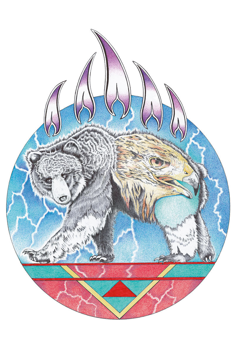 Celebrate the strength and protective spirit of the bear through “Spirit Bear” by Indigenous artist Hubert V Billy. This powerful piece reflects courage, grounding, and healing, bringing a sense of resilience and presence into your space.